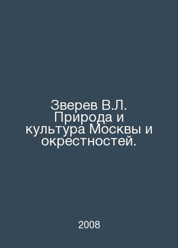 Zverev V.L. Nature and culture of Moscow and its environs. In Russian /Zverev V.L. Priroda i kultura Moskvy i okrestnostey. Popular essays by M. Moskvedenie: Moscow Textbooks and Cartolithography 2008. Contact us for details or to request photos of available books. Delivery of this book could take longer than normal due to additional handling time before shipping, and no rush delivery options are available. Please let us know if you have a specific date by which you need to receive your order.SKUalbbb4b384c3c5ccb79