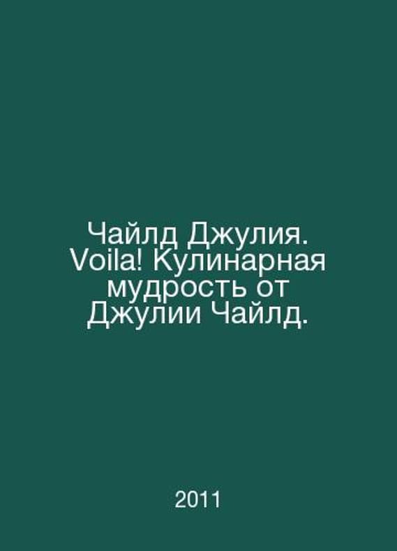 Julia Child. Voila! Cooking wisdom from Julia Child. In Russian /Chayld Dzhuliya. Voila! Kulinarnaya mudrost ot Dzhulii Chayld. Series: VIP Clinic. Translation from English. Moscow, Eksmo Publishing House. 2011 year.. Contact us for details or to request photos of available books. SKUalbbb668483d5478c8a.