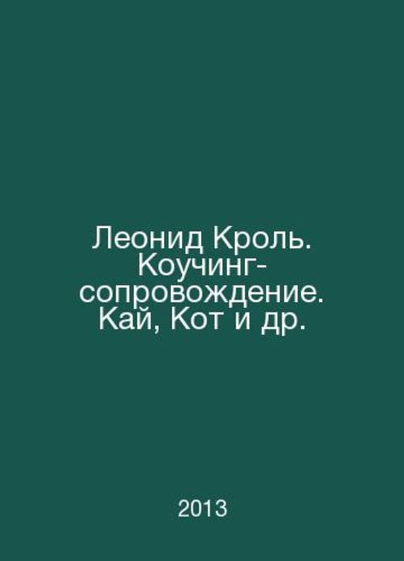 Leonid Krol. Coaching support. Kai, Kot, etc. In Russian /Leonid Krol. Kouching-soprovozhdenie. Kay, Kot i dr. Series: Psychology in Business. Moscow, Class, 2013.Contact us for details or to request photos of available books. Delivery of this book could take longer than normal due to additional handling time before shipping, and no rush delivery options are available. Please let us know if you have a specific date by which you need to receive your order.SKUalbbb9332f7a8038e2b