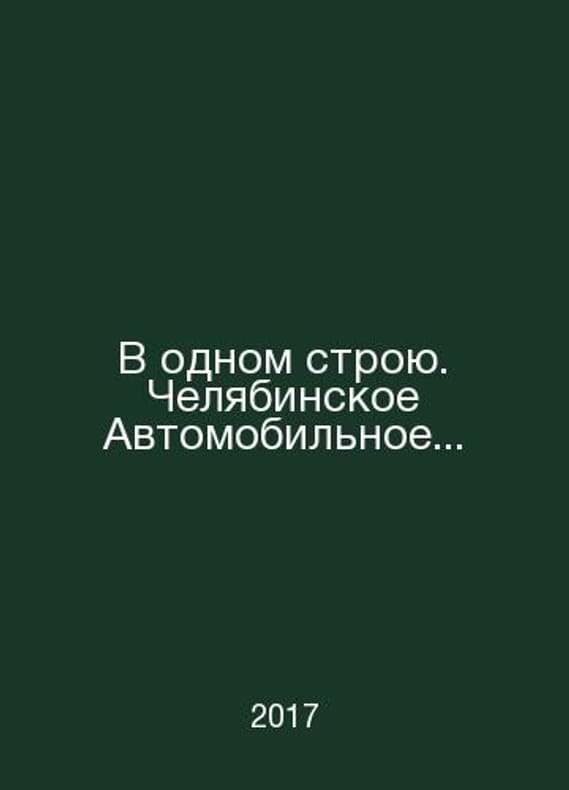 In one line. Chelyabinsk Automobile.. In Russian /V odnom stroyu. Chelyabinskoe Avtomobilnoe.. Military History Essay. Chelyabinsk 2017.Contact us for details or to request photos of available books. Delivery of this book could take longer than normal due to additional handling time before shipping, and no rush delivery options are available. Please let us know if you have a specific date by which you need to receive your order.SKUalbbc1e598564a68e0a