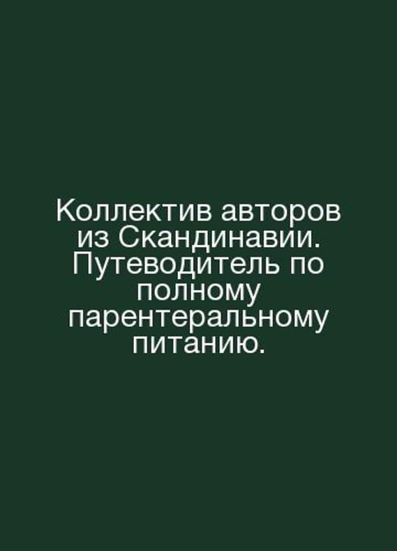 A team of authors from Scandinavia. A guide to complete parenteral nutrition. In Russian /Kollektiv avtorov iz Skandinavii. Putevoditel po polnomu parenteralnomu pitaniyu. Editors: Ragnar Berlin and Torsten Mossberg. No announcement. No announcement. No announcement.Contact us for details or to request photos of available books. Delivery of this book could take longer than normal due to additional handling time before shipping, and no rush delivery options are available. Please let us know if you have a specific date by which you need to receive your order.SKUalbbc4b3e829954c42e