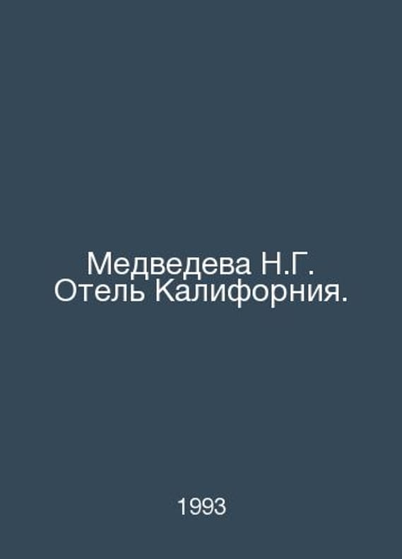 Medvedeva N.G. Hotel California. In Russian /Medvedeva N.G. Otel Kaliforniya. Novel, stories M Verb 1993.Contact us for details or to request photos of available books. Delivery of this book could take longer than normal due to additional handling time before shipping, and no rush delivery options are available. Please let us know if you have a specific date by which you need to receive your order.SKUalbbc50f078f739466c