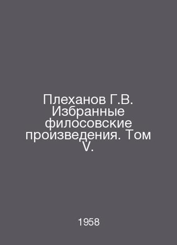 Plekhanov G.V. Selected Philosophical Works. Volume V. In Russian /Plekhanov G.V. Izbrannye filosovskie proizvedeniya. Tom V. M. Izd. Socio-economic. Literature 1958.Contact us for details or to request photos of available books. Delivery of this book could take longer than normal due to additional handling time before shipping, and no rush delivery options are available. Please let us know if you have a specific date by which you need to receive your order.SKUalbbc631363c4aeccb3