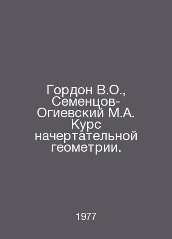 Gordon V.O., Sementsov-Ogievsky M.A. Course of Chart Geometry. In Russian /Gordon V.O., Sementsov-Ogievskiy M.A. Kurs nachertatelnoy geometrii. M. Science 1977.Contact us for details or to request photos of available books. Delivery of this book could take longer than normal due to additional handling time before shipping, and no rush delivery options are available. Please let us know if you have a specific date by which you need to receive your order.SKUalbbcbf762f448aeced