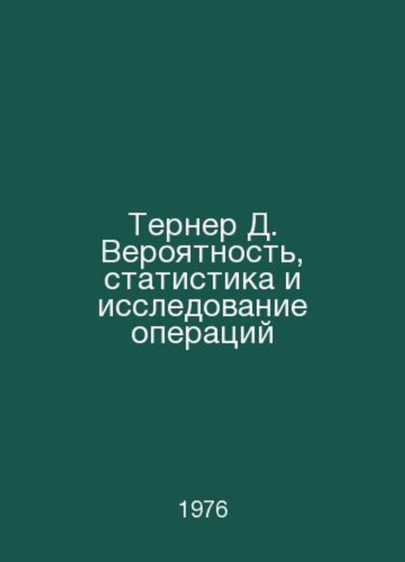 Turner D. Likelihood, Statistics, and Transaction Researc In Russian /Terner D. Veroyatnost, statistika i issledovanie operatsiy Pen in English M Statistics 1976.Contact us for details or to request photos of available books. Delivery of this book could take longer than normal due to additional handling time before shipping, and no rush delivery options are available. Please let us know if you have a specific date by which you need to receive your order.SKUalbbd018f9881db6389