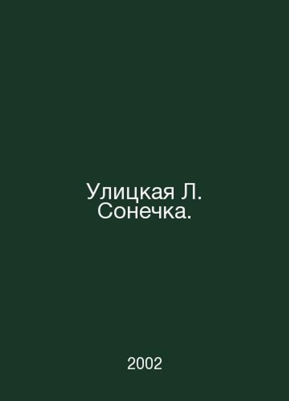 Sonechka Street. In Russian /Ulitskaya L. Sonechka. M. Eksmo. 2002.Contact us for details or to request photos of available books. Delivery of this book could take longer than normal due to additional handling time before shipping, and no rush delivery options are available. Please let us know if you have a specific date by which you need to receive your order.SKUalbbd69348b0fe81e08