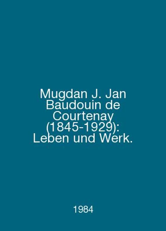 Mugdan J. Jan Baudouin de Courtenay (1845-1929): Leben und Werk. In English /Mugdan J. Jan Baudouin de Courtenay (1845-1929): Leben und Werk. Ivan Alexandrovich Baudouin de Courtenay: The Life and Work of Munich Wilhelm Fink Verlag 1984.Contact us for details or to request photos of available books. Delivery of this book could take longer than normal due to additional handling time before shipping, and no rush delivery options are available. Please let us know if you have a specific date by which you need to receive your order.SKUalbbdb8305551ea0bd8