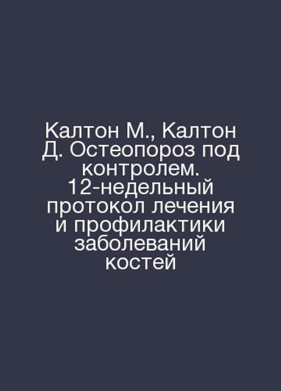 Calton M., Calton D. Osteoporosis under control. 12-week treatment and prevention protocol for bone diseases In Russian /Kalton M., Kalton D. Osteoporoz pod kontrolem. 12-nedelnyy protokol lecheniya i profilaktiki zabolevaniy kostey M 2023 384p..Contact us for details or to request photos of available books. Delivery of this book could take longer than normal due to additional handling time before shipping, and no rush delivery options are available. Please let us know if you have a specific date by which you need to receive your order.SKUalbbe21022a1ec49835