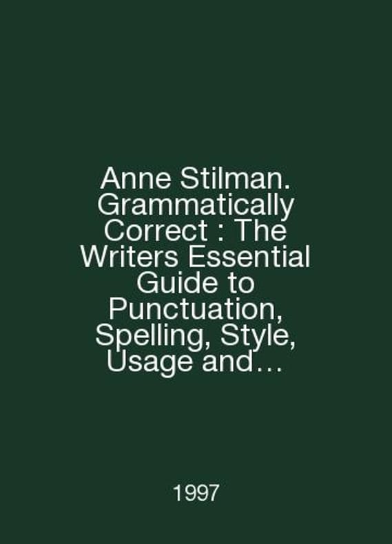 Anne Stilman. Grammatically Correct: The Writers Essential Guide to Punctuation, Spelling, Style, Usage and Grammar Grammatically Right: A Writers Basic Guide to Punctuation, Spelling, Style, Use, and Grammar In English /Anne Stilman. Grammatically Correct: The Writers Essential Guide to Punctuation, Spelling, Style, Usage and Grammar Grammaticheski pravilno: osnovnoe rukovodstvo pisatelya po punktuatsii, pravopisaniyu, stilyu, ispolzovaniyu i grammatike English Writers Digest Books 1997. Contact us for details or to request photos of available books. Delivery of this book could take longer than normal due to additional handling time before shipping, and no rush delivery options are available. Please let us know if you have a specific date by which you need to receive your order. SKUalbbe66e6edfcff6642