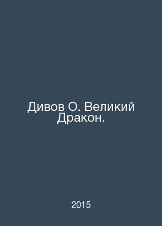 Diva O Great Dragon. In Russian /Divov O. Velikiy Drakon. Series: M Exmo 2015. Contact us for details or to request photos of available books. Delivery of this book could take longer than normal due to additional handling time before shipping, and no rush delivery options are available. Please let us know if you have a specific date by which you need to receive your order.SKUalbbe96cd4f21d35ae8