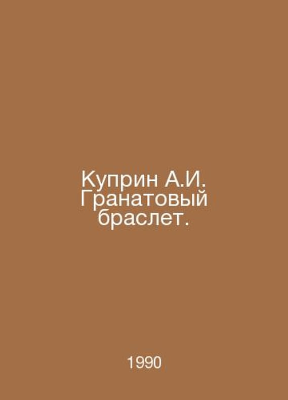 Kuprin A.I. Pomegranate bracelet. In Russian /Kuprin A.I. Granatovyy braslet. Introductory article, comments by A.A.Nosov, artist V.V.Ilyashenko M. Book 1990. Contact us for details or to request photos of available books. Delivery of this book could take longer than normal due to additional handling time before shipping, and no rush delivery options are available. Please let us know if you have a specific date by which you need to receive your order.SKUalbbee1d26d98ceb37b