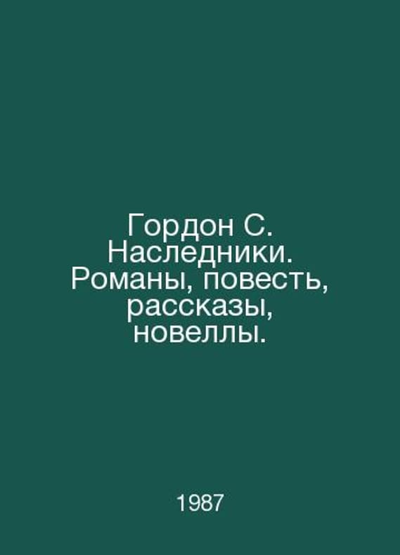 Gordon S. Heirs. Novels, short stories, short stories. In Russian /Gordon S. Nasledniki. Romany, povest, rasskazy, novelly. Translation from Hebrew to Soviet writer 1987.Contact us for details or to request photos of available books. Delivery of this book could take longer than normal due to additional handling time before shipping, and no rush delivery options are available. Please let us know if you have a specific date by which you need to receive your order.SKUalbbf27486472dfca10