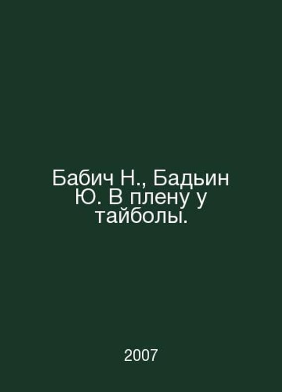 Babich N., Badin Yu. Captive of the Taibola. In Russian /Babich N., Badin Yu. V plenu u tayboly. Rkhangelsk, 2007.Contact us for details or to request photos of available books. Delivery of this book could take longer than normal due to additional handling time before shipping, and no rush delivery options are available. Please let us know if you have a specific date by which you need to receive your order.SKUalbbf90f4c9d2023672