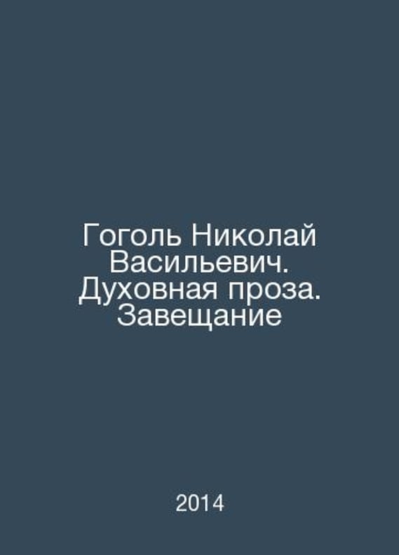 Gogol Nikolai Vasilyevich. Spiritual Prose. Testament In Russian /Gogol Nikolay Vasilevich. Dukhovnaya proza. Zaveshchanie Series: Books about the eternal. M. OlmaMediaGroup 2014. Contact us for details or to request photos of available books. Delivery of this book could take longer than normal due to additional handling time before shipping, and no rush delivery options are available. Please let us know if you have a specific date by which you need to receive your order. SKUalbc000cf64939f62bf