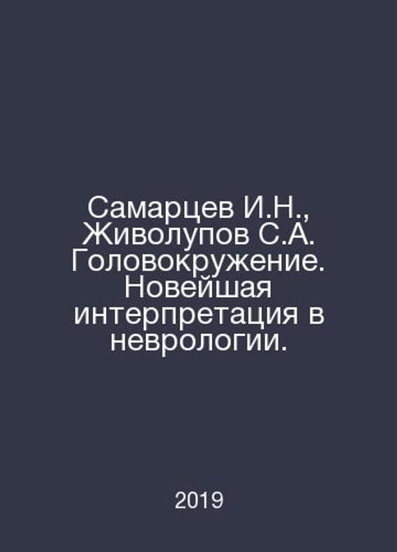 Samartsev I.N., Zhivolupov S.A. Dizziness. The newest interpretation in neurology. In Russian /Samartsev I.N., Zhivolupov S.A. Golovokruzhenie. Noveyshaya interpretatsiya v nevrologii. M MedPressInform 2019.Contact us for details or to request photos of available books. Delivery of this book could take longer than normal due to additional handling time before shipping, and no rush delivery options are available. Please let us know if you have a specific date by which you need to receive your order.SKUalbc0874c8dd990c5d9