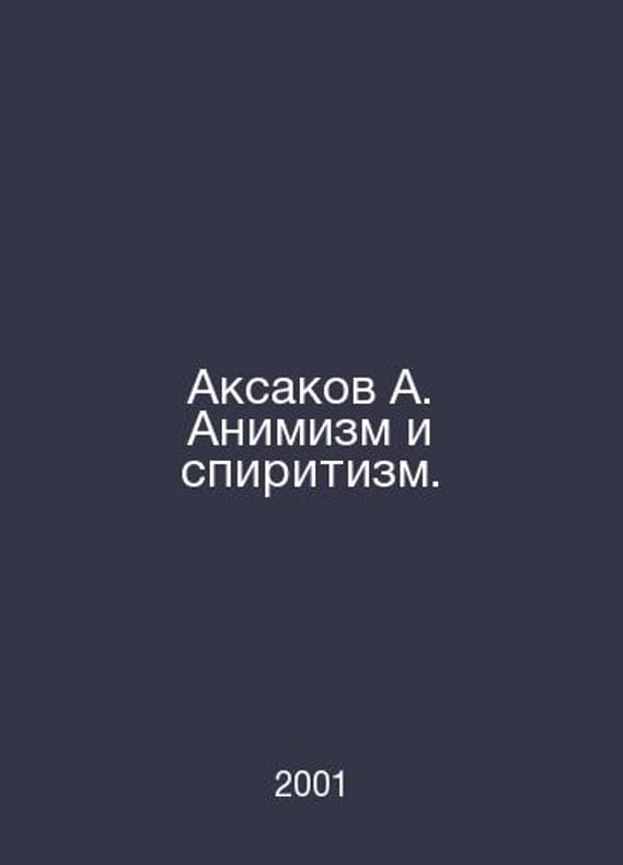 Aksakov A. Animism and Spiritualism. In Russian /Aksakov A. Animizm i spiritizm. Series: Signs of Time by M. Agraph 2001. Contact us for details or to request photos of available books. Delivery of this book could take longer than normal due to additional handling time before shipping, and no rush delivery options are available. Please let us know if you have a specific date by which you need to receive your order. SKUalbc0bf178f180285b6