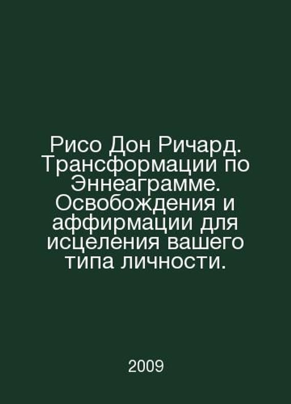 Riso Don Richard. Transformations on Enneagram. Liberations and affirmations to heal your personality type. In Russian /Riso Don Richard. Transformatsii po Enneagramme. Osvobozhdeniya i affirmatsii dlya istseleniya vashego tipa lichnosti. M., Open World. 2009. Contact us for details or to request photos of available books. Delivery of this book could take longer than normal due to additional handling time before shipping, and no rush delivery options are available. Please let us know if you have a specific date by which you need to receive your order. SKUalbc11f35ff6ffe4214