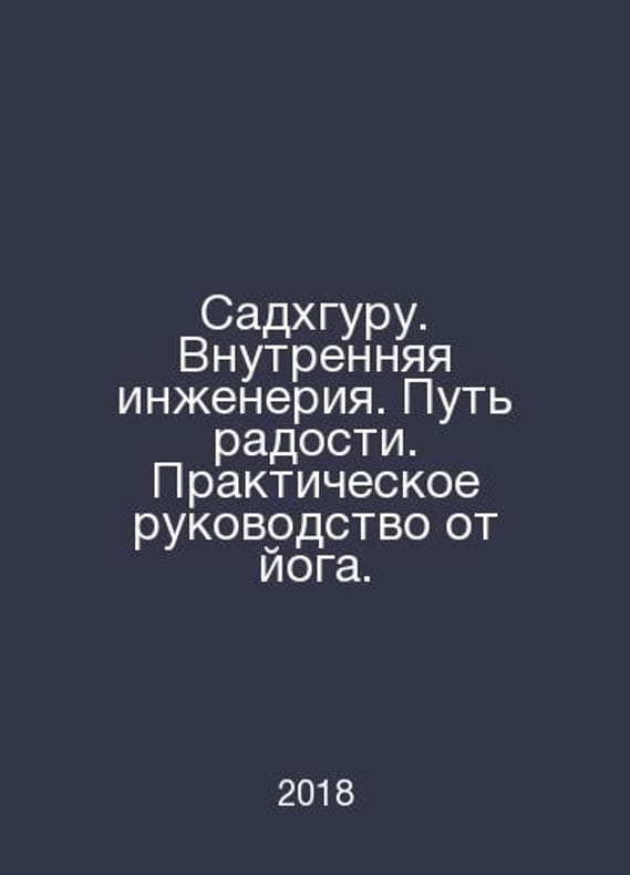 Sadhguru. Inner Engineering. The Path of Joy. A Practical Guide from Yoga. In Russian /Sadkhguru. Vnutrennyaya inzheneriya. Put radosti. Prakticheskoe rukovodstvo ot yoga. Series: The Great Teachers of Modernity. M. Eksmo, 2018. Contact us for details or to request photos of available books. Delivery of this book could take longer than normal due to additional handling time before shipping, and no rush delivery options are available. Please let us know if you have a specific date by which you need to receive your order. SKUalbc161448758194211