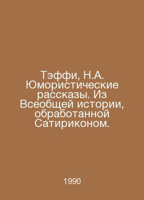 Teffy, N.A. Humorous Stories. From the Universal History, processed by Satiricon. In Russian /Teffi, N.A. Yumoristicheskie rasskazy. Iz Vseobshchey istorii, obrabotannoy Satirikonom. Taffy, N.A. Humorous Stories. From the Universal History Processed by Satiricon. 1990.Contact us for details or to request photos of available books. Delivery of this book could take longer than normal due to additional handling time before shipping, and no rush delivery options are available. Please let us know if you have a specific date by which you need to receive your order.SKUalbc1aa79f078c436c8