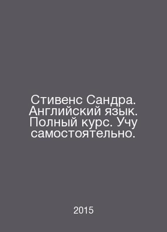 Sandra Stevens. English Language. Complete course. I teach myself. In Russian /Stivens Sandra. Angliyskiy yazyk. Polnyy kurs. Uchu samostoyatelno. M. Exmo 2015..Contact us for details or to request photos of available books. Delivery of this book could take longer than normal due to additional handling time before shipping, and no rush delivery options are available. Please let us know if you have a specific date by which you need to receive your order. SKUalbc29d818f11862561