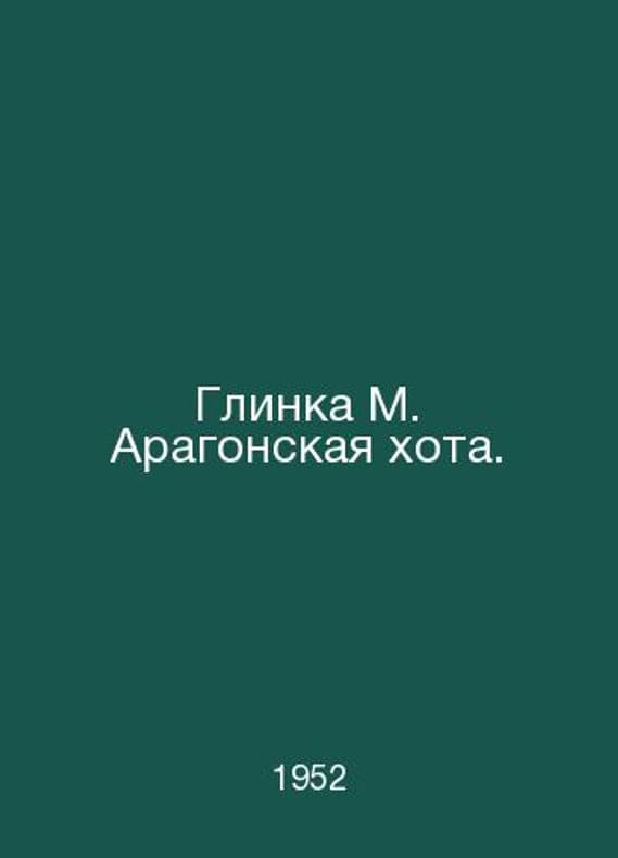 Glinka M. Aragon hot. In Russian /Glinka M. Aragonskaya khota. Score. M. Muzgiz. 1952. Contact us for details or to request photos of available books. Delivery of this book could take longer than normal due to additional handling time before shipping, and no rush delivery options are available. Please let us know if you have a specific date by which you need to receive your order.SKUalbc31f9629aa8d23f5