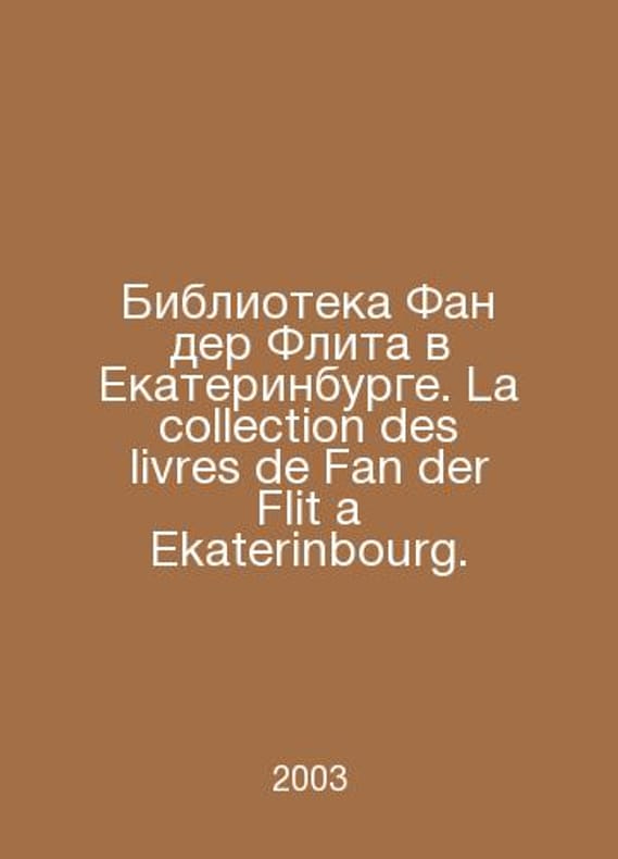 Fan der Flit Library in Yekaterinburg. La collection des livres de Fan der Flit a Ekaterinburg. In Russian (ask us if in doubt)/Biblioteka Fan der Flita v Ekaterinburge. La collection des livres de Fan der Flit a Ekaterinbourg.. Catalogue of books in foreign languages from the funds of the Belinsky SOUNB and the National Library of the Gorky Ural State University. Ekaterinburg Socrates 2003. 140 p. SKUalbcca7fa9b40f1656f.