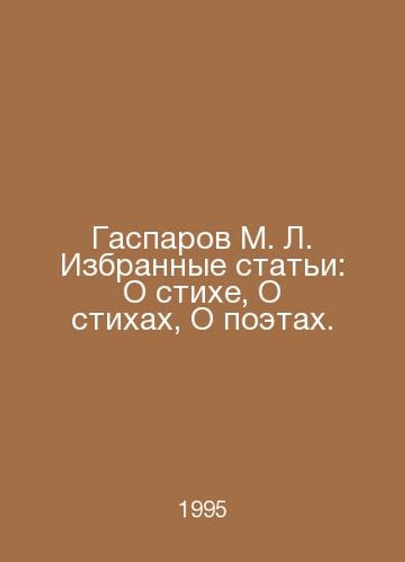 Gasparov M. L. Selected articles: On poetry, On poems, On poets. In Russian /Gasparov M. L. Izbrannye stati: O stikhe, O stikhakh, O poetakh. Series: Scientific Library. M. New Literary Review (UFO). 1995. Contact us for details or to request photos of available books. Delivery of this book could take longer than normal due to additional handling time before shipping, and no rush delivery options are available. Please let us know if you have a specific date by which you need to receive your order. SKUalbc42e6ed0b70725db
