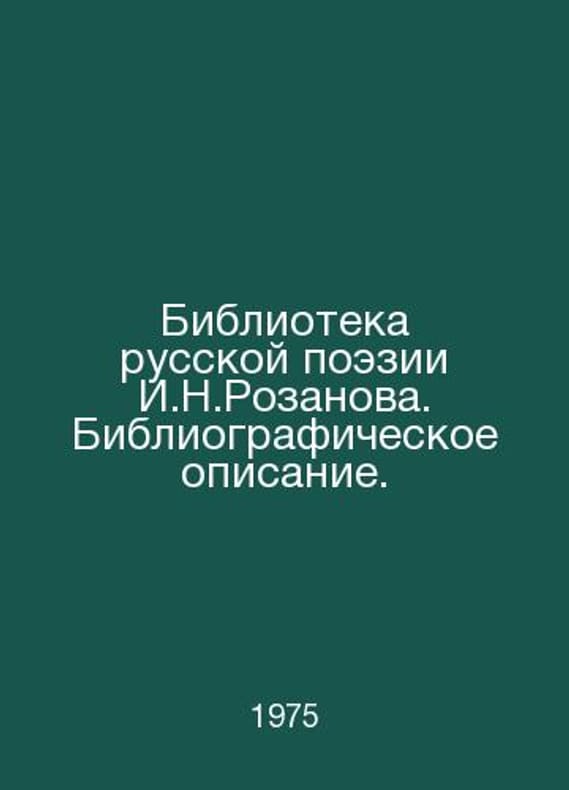 I.N. Rozanov Library of Russian Poetry. Bibliographic description. In Russian /Biblioteka russkoy poezii I.N.Rozanova. Bibliograficheskoe opisanie. Moscow Book. 1975.. Contact us for details or to request photos of available books. SKUalbc4674445382c5520.