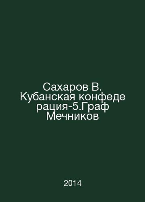 Sakharov V. Kuban Confederation-5.Graf Mechnikov In Russian /Sakharov V. Kubanskaya konfederatsiya-5.Graf Mechnikov Series: Our M Centre Polygraph 2014. Contact us for details or to request photos of available books. Delivery of this book could take longer than normal due to additional handling time before shipping, and no rush delivery options are available. Please let us know if you have a specific date by which you need to receive your order.SKUalbc5d8e40b93f45a1d