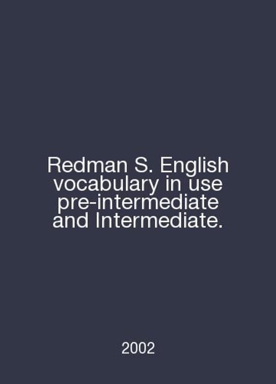 Redman S. English vocabulary in use pre-intermediate and Intermediate. In English /Redman S. English vocabulary in use pre-intermediate and Intermediate. Cambridge University Press 2002.. Contact us for details or to request photos of available books. SKUalbc5fc0228105195a3.