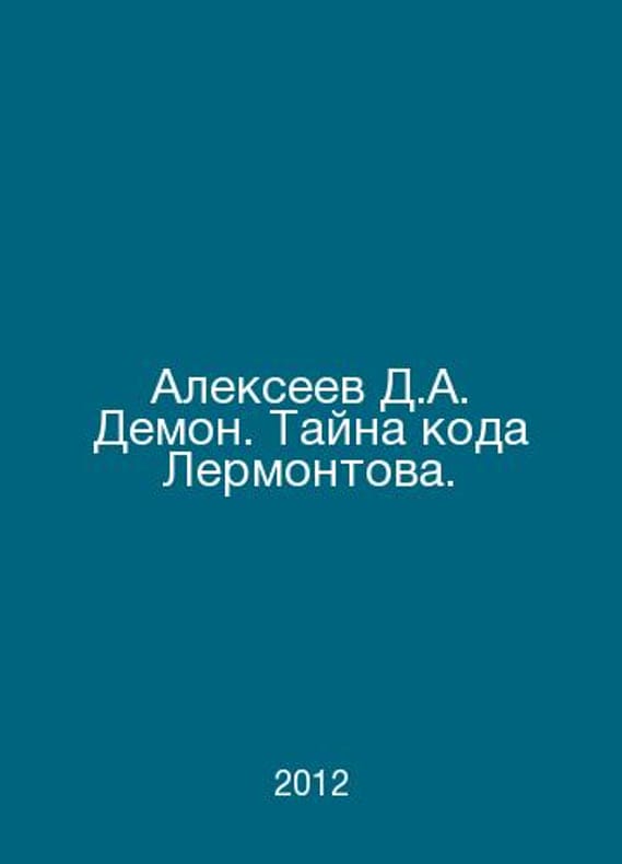 Alexeev D.A. Demon. The Mystery of Lermontovs Code. In Russian /Alekseev D.A. Demon. Tayna koda Lermontova. M. Helios ARV. 2012. Contact us for details or to request photos of available books. Delivery of this book could take longer than normal due to additional handling time before shipping, and no rush delivery options are available. Please let us know if you have a specific date by which you need to receive your order. SKUalbc62a4d68d5e637ac