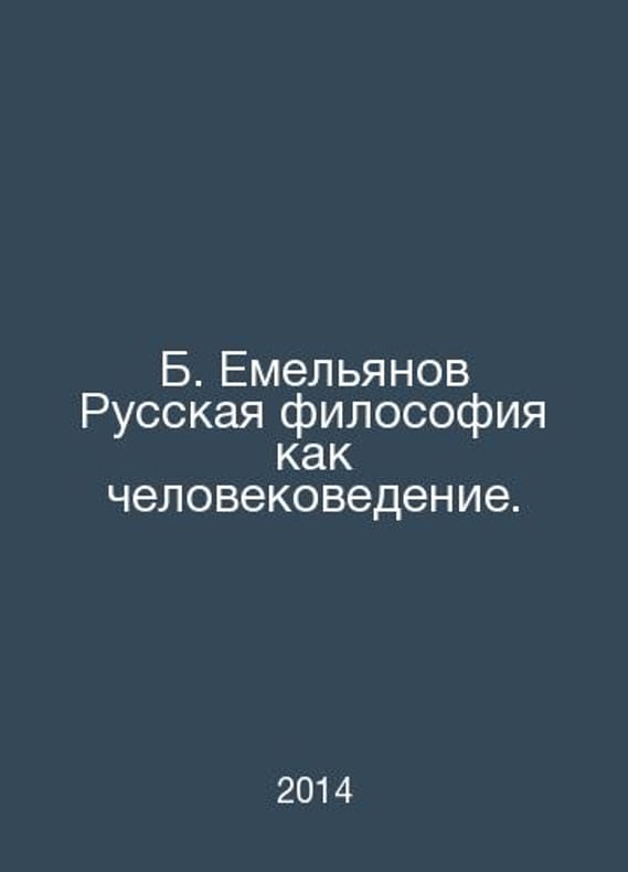 B. Yemelyanov Russian Philosophy as Humanities. In Russian /B. Emelyanov Russkaya filosofiya kak chelovekovedenie. Yekaterinburg Ural State University 2014. Contact us for details or to request photos of available books. Delivery of this book could take longer than normal due to additional handling time before shipping, and no rush delivery options are available. Please let us know if you have a specific date by which you need to receive your order.SKUalbc69b53b96335e30c