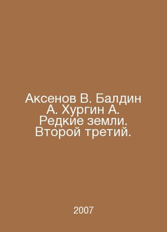 Aksenov V. Baldin A. Khurgin A. Rare Lands. Second Third. In Russian /Aksenov V. Baldin A. Khurgin A. Redkie zemli. Vtoroy tretiy. Aksenov V. Baldin A. Khurgin A. Rare Lands. Second Third. 2007.Contact us for details or to request photos of available books. Delivery of this book could take longer than normal due to additional handling time before shipping, and no rush delivery options are available. Please let us know if you have a specific date by which you need to receive your order.SKUalbc6aeca4df0003725