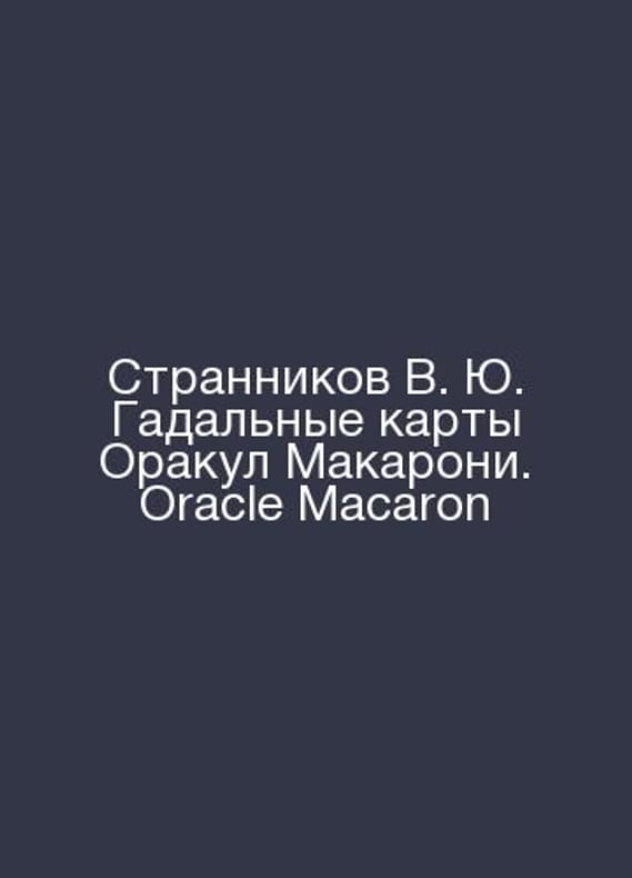 V.Yu. Wanderlust Oracle Macaroni. Oracle Macaron In Russian /Strannikov V. Yu. Gadalnye karty Orakul Makaroni. Oracle Macaron N.N. Magic-Kniga 2021. Contact us for details or to request photos of available books. Delivery of this book could take longer than normal due to additional handling time before shipping, and no rush delivery options are available. Please let us know if you have a specific date by which you need to receive your order. SKUalbc7c36147219df4f1