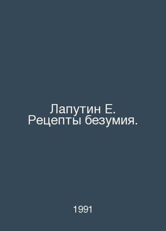 Laputin E. Recipes for Madness. In Russian /Laputin E. Retsepty bezumiya. M. Moscow Worker 1991.Contact us for details or to request photos of available books. Delivery of this book could take longer than normal due to additional handling time before shipping, and no rush delivery options are available. Please let us know if you have a specific date by which you need to receive your order.SKUalbc8437afe173f5b14