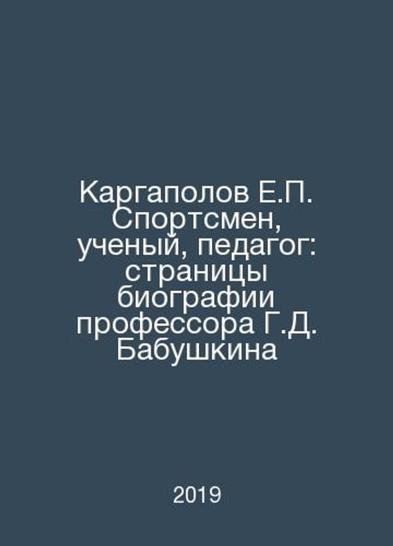 Kargapolov E. Athlete, scientist, pedagogue: pages of the biography of Professor G.D. Babushkin In Russian /Kargapolov E. Sportsmen, uchenyy, pedagog: stranitsy biografii professora G.D. Babushkina Novosibirsk Sibprint 2019. Contact us for details or to request photos of available books. Delivery of this book could take longer than normal due to additional handling time before shipping, and no rush delivery options are available. Please let us know if you have a specific date by which you need to receive your order.SKUalbc8a78896c8a064f7