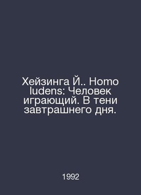 Heisinga Y. Homo ludens: A man playing. In the shadow of tomorrow. In Russian /Kheyzinga Y. Homo ludens: Chelovek igrayushchiy. V teni zavtrashnego dnya. M., Progress 1992.Contact us for details or to request photos of available books. Delivery of this book could take longer than normal due to additional handling time before shipping, and no rush delivery options are available. Please let us know if you have a specific date by which you need to receive your order.SKUalbc91c15e2495cb59c