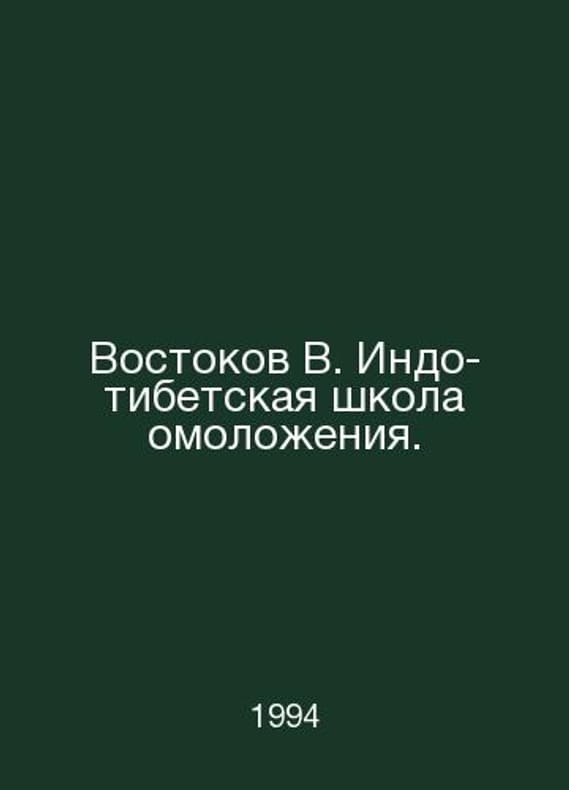 Vostok B. Indo-Tibetan School of Rejuvenation. In Russian /Vostokov V. Indo-tibetskaya shkola omolozheniya. White Llama, Volume 3 SPb 1994. Contact us for details or to request photos of available books. Delivery of this book could take longer than normal due to additional handling time before shipping, and no rush delivery options are available. Please let us know if you have a specific date by which you need to receive your order.SKUalbc9c19b6ff8dca2e7