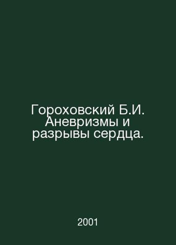 Gorokhovsky B.I. Aneurysms and ruptures of the heart. In Russian /Gorokhovskiy B.I. Anevrizmy i razryvy serdtsa. M. IIA 2001.Contact us for details or to request photos of available books. Delivery of this book could take longer than normal due to additional handling time before shipping, and no rush delivery options are available. Please let us know if you have a specific date by which you need to receive your order.SKUalbc9e0f7e23aa293e9