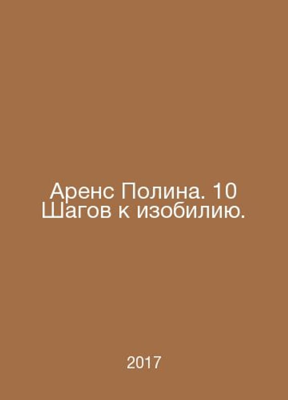 Arens Pauline. 10 Steps to Plenty. In Russian /Arens Polina. 10 Shagov k izobiliyu. M.: Veligor 2017. Contact us for details or to request photos of available books. Delivery of this book could take longer than normal due to additional handling time before shipping, and no rush delivery options are available. Please let us know if you have a specific date by which you need to receive your order. SKUalbca2217ca93b073a1