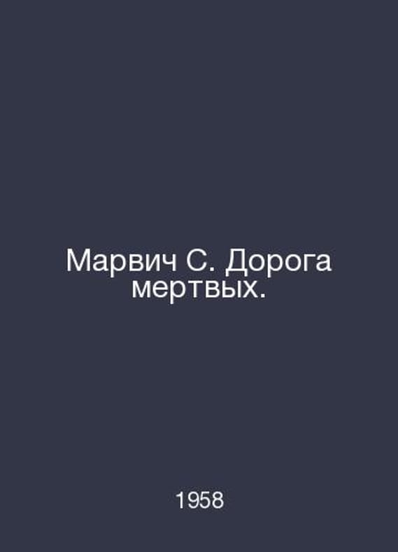 Marwich S. The Road of the Dead. In Russian /Marvich S. Doroga mertvykh. Novel M Sov.writer 1958.Contact us for details or to request photos of available books. Delivery of this book could take longer than normal due to additional handling time before shipping, and no rush delivery options are available. Please let us know if you have a specific date by which you need to receive your order.SKUalbca7feb862abafe6e