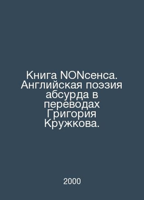 The Book of Nonsense. English Poetry of the Absurd in Translations by Grigory Kruzhkov. In Russian /Kniga NONsensa. Angliyskaya poeziya absurda v perevodakh Grigoriya Kruzhkova. M. B.C.G.-PRESS 2000.Contact us for details or to request photos of available books. Delivery of this book could take longer than normal due to additional handling time before shipping, and no rush delivery options are available. Please let us know if you have a specific date by which you need to receive your order.SKUalbcae5d1b5b976a613