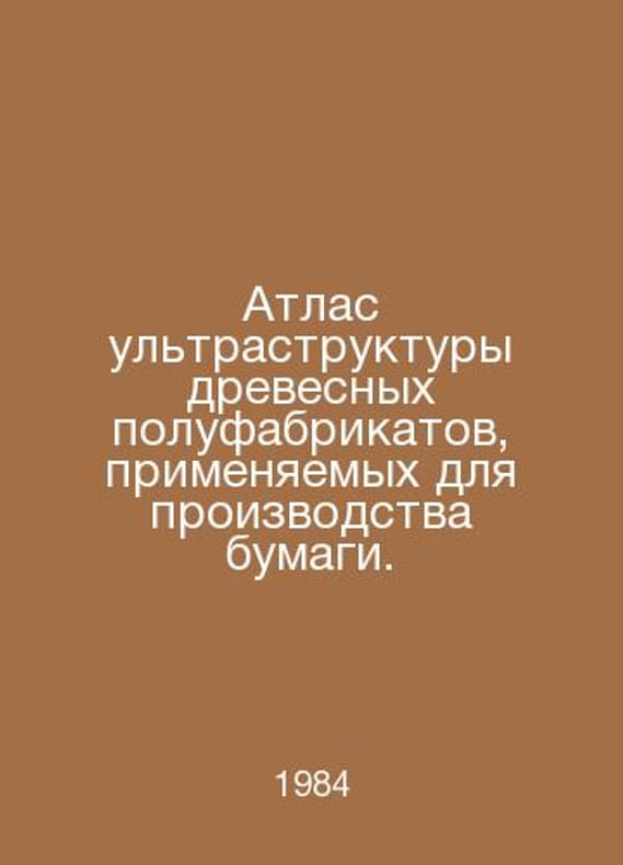 Atlas of Ultra-Structures of Wood Semi-finished Products Used in Paper Production. In Russian /Atlas ultrastruktury drevesnykh polufabrikatov, primenyaemykh dlya proizvodstva bumagi. M. Light Industry 1984.Contact us for details or to request photos of available books. Delivery of this book could take longer than normal due to additional handling time before shipping, and no rush delivery options are available. Please let us know if you have a specific date by which you need to receive your order.SKUalbcb13927080e6b2ca