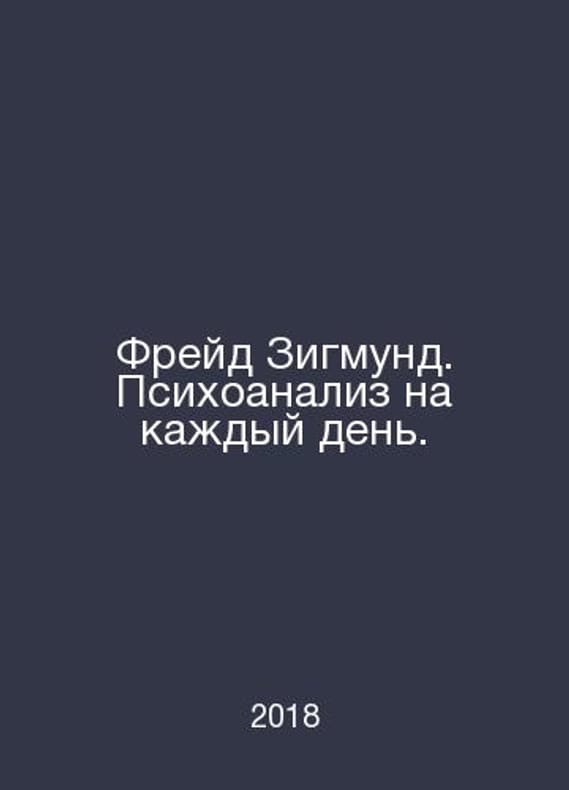 Freud Sigmund. Psychoanalysis for every day. In Russian /Freyd Zigmund. Psikhoanaliz na kazhdyy den. Compilation and notes by I. Kivel. Translation from German Wolf M.V., Polyakov I.E. Palmyra 2018.Contact us for details or to request photos of available books. Delivery of this book could take longer than normal due to additional handling time before shipping, and no rush delivery options are available. Please let us know if you have a specific date by which you need to receive your order.SKUalbccef6387c4742b2f