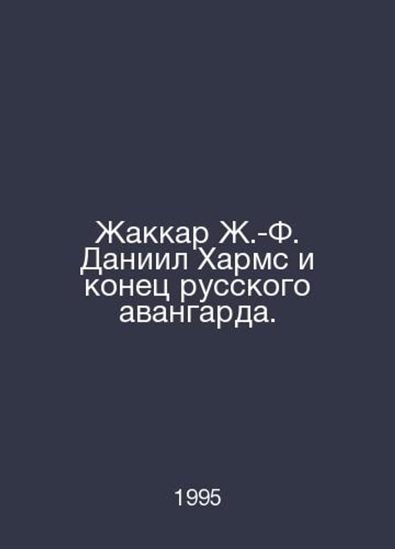 Jacquard J.-F. Daniel Kharms and the End of the Russian Avant-garde. In Russian /Zhakkar Zh.-F. Daniil Kharms i konets russkogo avangarda. Series: Modern Western Russian Studies. St. Petersburg Academic Project. 1995. Contact us for details or to request photos of available books. Delivery of this book could take longer than normal due to additional handling time before shipping, and no rush delivery options are available. Please let us know if you have a specific date by which you need to receive your order. SKUalbcd4f997728a011cd