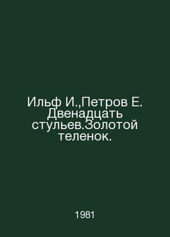 Ilf I., Petrov E. Twelve chairs. Golden calf. In Russian /Ilf I., Petrov E. Dvenadtsat stulev.Zolotoy telenok. Minsk Belarus 1981.Contact us for details or to request photos of available books. Delivery of this book could take longer than normal due to additional handling time before shipping, and no rush delivery options are available. Please let us know if you have a specific date by which you need to receive your order.SKUalbcdc07fee45d2f703