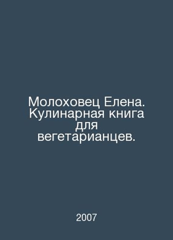 Elena Molokhovets. Cookbook for vegetarians. In Russian /Molokhovets Elena. Kulinarnaya kniga dlya vegetariantsev. M. Eksmo 2007.. Contact us for details or to request photos of available books. SKUalbcdd1005d25c98a3e.