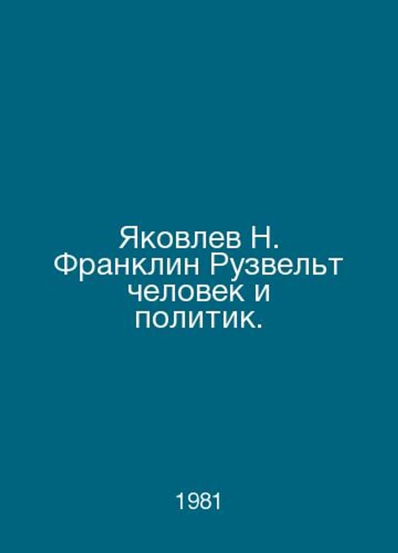 Yakovlev N. Franklin Roosevelt is a man and a politician. In Russian /Yakovlev N. Franklin Ruzvelt chelovek i politik. Re-reading M International Relations 1981.Contact us for details or to request photos of available books. Delivery of this book could take longer than normal due to additional handling time before shipping, and no rush delivery options are available. Please let us know if you have a specific date by which you need to receive your order.SKUalbcde73a2e7d9f9498