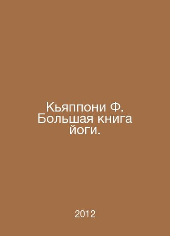Chiapponi F. The Big Book of Yoga. In Russian /Kyapponi F. Bolshaya kniga yogi. M Arrow 2012. Contact us for details or to request photos of available books. Delivery of this book could take longer than normal due to additional handling time before shipping, and no rush delivery options are available. Please let us know if you have a specific date by which you need to receive your order.SKUalbce248de923002849
