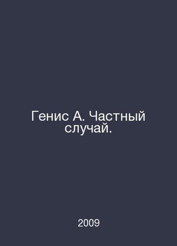 Genis A. A special case. In Russian /Genis A. Chastnyy sluchay. Philological Prose. M. Ast 2009.Contact us for details or to request photos of available books. Delivery of this book could take longer than normal due to additional handling time before shipping, and no rush delivery options are available. Please let us know if you have a specific date by which you need to receive your order.SKUalbce694ca290565a0c